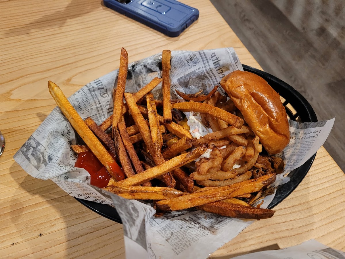 My husband and I were celebrating our 27th wedding anniversary, and our favorite restaurant for steaks was closed that day. We are not ones for extravagant meals, so just a small local restaurant was all we really wanted. I wanted someplace that had a variety of dishes, from steak to sandwiches to pasta, to well everything! This place definitely met our needs! I had the Brisket sandwich, and it was so melt in your mouth it was mouth-watering! Fries were fresh cut and were cooked to perfection! Marissa took care of us and she was great at meeting our needs! It's a small place and probably gets pretty crowded and noisy on weekend nights since it is a bar, so keep that in mind. We were there on a Monday late afternoon, and it wasn't too bad. I'll definitely come back to try more of their menu!